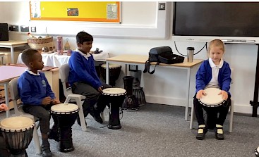 In addition to weekly Charanga music lessons we have a 15-week programme of instrument tuition for each year group. In Early years we have a singing coach come in, in Year 1 our children learn African drumming, in Year 2 they learn Ukulele and in Year 3 recorder. Families can also access private music lesson for their child should they wish to.